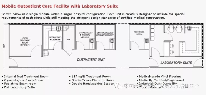 跨模塊移動(dòng)醫(yī)院系統(tǒng)提供最先進(jìn)的、完全可擴(kuò)展的裝配式醫(yī)院,成本低于傳統(tǒng)建筑建造。裝配式醫(yī)院在國(guó)外也需要經(jīng)過(guò)醫(yī)學(xué)認(rèn)證,專為商業(yè)服務(wù)和快速應(yīng)急部署而設(shè)計(jì)。這種跨模塊醫(yī)院可為農(nóng)村、救災(zāi)、人口遷移、醫(yī)院改擴(kuò)建、軍事需要和人道主義援助等快速建設(shè)。