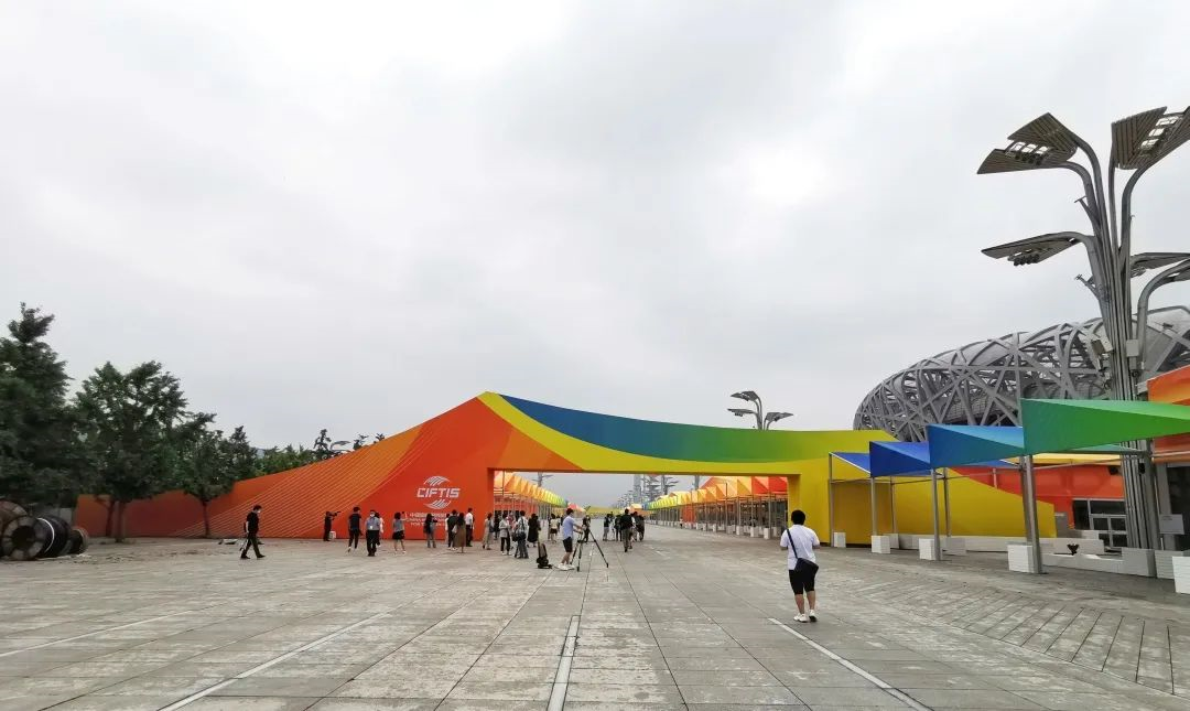 以?shī)W林匹克公園景觀大道為主軸,30個(gè)室外場(chǎng)館連成一道“彩虹”,5道“山形”迎賓門(mén)則與北部森林公園的奧海、仰山遙相呼應(yīng),將遠(yuǎn)處的風(fēng)景“框”到視野中。以?shī)W林匹克公園為背景的室外場(chǎng)館,是2020年中國(guó)國(guó)際服務(wù)貿(mào)易交易會(huì)(簡(jiǎn)稱“服貿(mào)會(huì)”)的亮點(diǎn)之一。