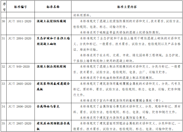 10月27日,工信部發(fā)布《200項(xiàng)行業(yè)標(biāo)準(zhǔn)及78項(xiàng)行業(yè)標(biāo)準(zhǔn)樣品報(bào)批公示》,其中包括66項(xiàng)建材行業(yè)標(biāo)準(zhǔn),公示截止日期2020年11月26日。
