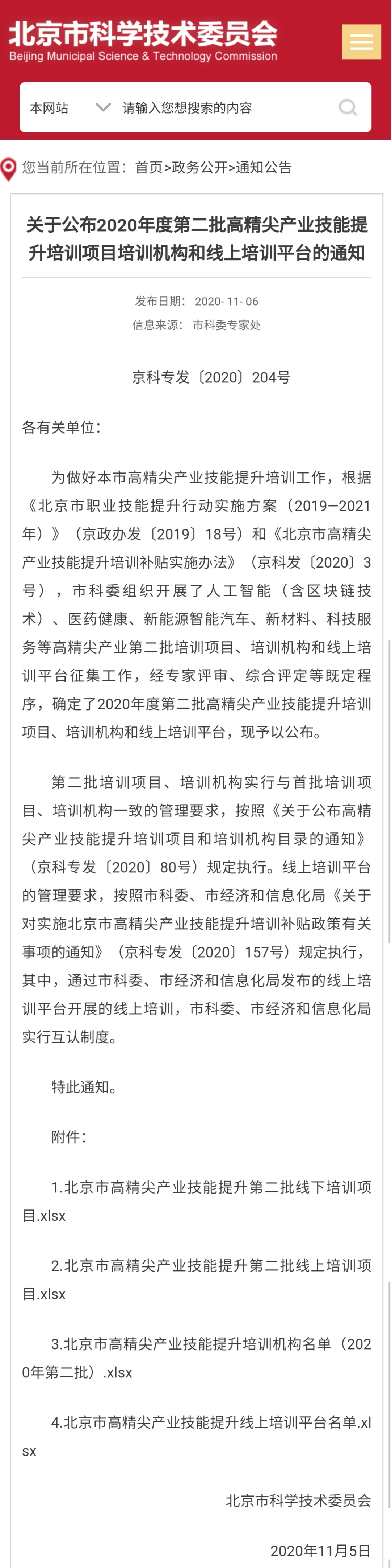 11月6日,北京市科學(xué)技術(shù)委員會發(fā)布《關(guān)于公布2020年度第二批高精尖產(chǎn)業(yè)技能提升培訓(xùn)項目培訓(xùn)機(jī)構(gòu)和線上培訓(xùn)平臺的通知》,培訓(xùn)中心入選“北京市高精尖產(chǎn)業(yè)技能提升培訓(xùn)機(jī)構(gòu)名單(2020年第二批)”名單。