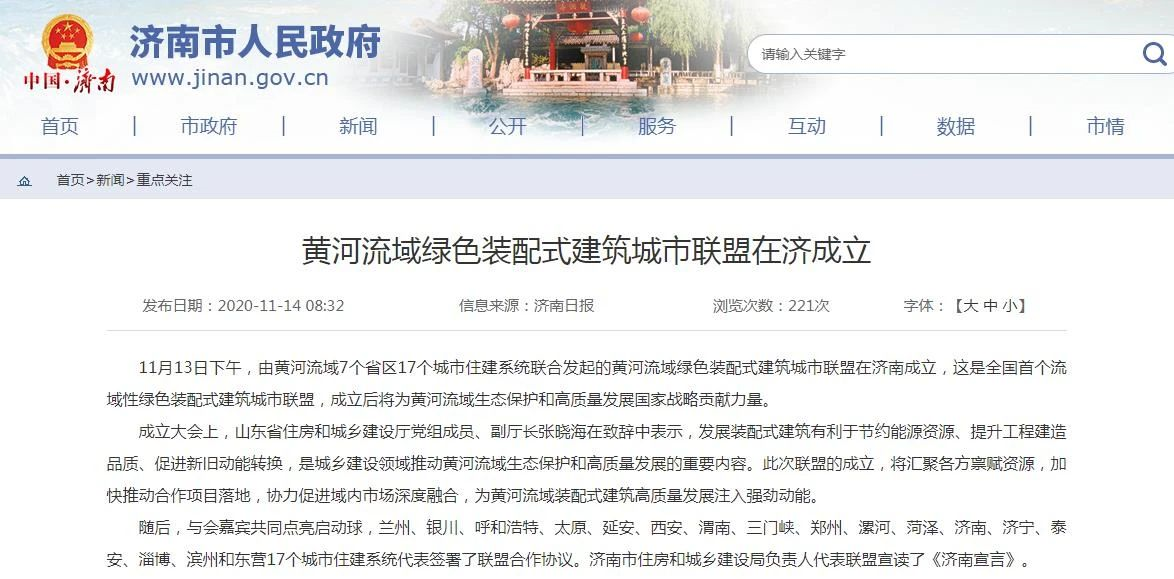 近日,由黃河流域7個省區(qū)17個城市住建系統(tǒng)聯(lián)合發(fā)起的黃河流域綠色裝配式建筑城市聯(lián)盟在濟(jì)南成立,這是全國首個流域性綠色裝配式建筑城市聯(lián)盟,成立后將為黃河流域生態(tài)保護(hù)和高質(zhì)量發(fā)展國家戰(zhàn)略貢獻(xiàn)力量。