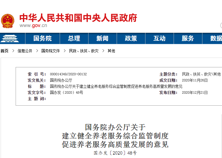 近日,國務(wù)院辦公廳印發(fā)了《關(guān)于建立健全養(yǎng)老服務(wù)綜合監(jiān)管制度促進(jìn)養(yǎng)老服務(wù)高質(zhì)量發(fā)展的意見》(以下簡稱《意見》),對養(yǎng)老服務(wù)綜合監(jiān)管工作作出部署。