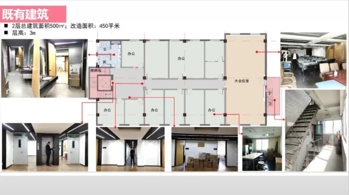 學(xué)校二層原始格局都是小隔間辦公室,只有一個(gè)大教室可以上課,比例窄長(zhǎng)、新風(fēng)和采光不足,上課感受欠佳。