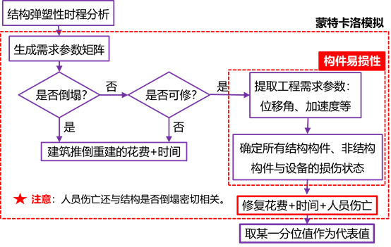 下面將簡單介紹FEMA-P58 對修復(fù)花費(fèi)、時間及人員傷亡的計算流程: