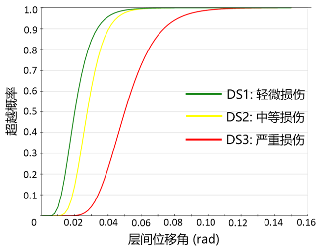 從計算流程中可以看出,構(gòu)件易損性作為聯(lián)系工程需求參數(shù)與構(gòu)件損傷狀態(tài)的“橋梁”是十分重要的。構(gòu)件易損性曲線描述了構(gòu)件在某一給定的工程需求參數(shù)下發(fā)生不同程度損傷的概率分布情況。
