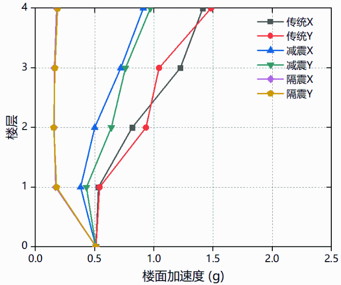 2、對于低矮建筑結(jié)構(gòu),采用隔震技術(shù)可顯著降低結(jié)構(gòu)變形與樓面加速度,更容易實現(xiàn)震后功能可持續(xù)優(yōu)的目標(biāo);