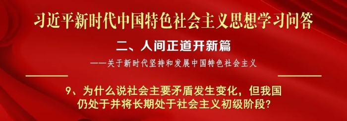 建設(shè)社會(huì)主義是一次偉大的長征,走過社會(huì)主義初級(jí)階段至少需要上百年時(shí)間。在這個(gè)進(jìn)程中,社會(huì)主要矛盾不是一成不變的。長期以來,人民日益增長的物質(zhì)文化需要同落后的社會(huì)生產(chǎn)之間的矛盾是我國社會(huì)主要矛盾。隨著中國特色社會(huì)主義進(jìn)入新時(shí)代,我國社會(huì)主要矛盾已經(jīng)轉(zhuǎn)化為人民日益增長的美好生活需要和不平衡不充分的發(fā)展之間的矛盾。