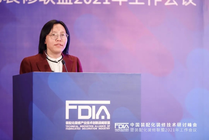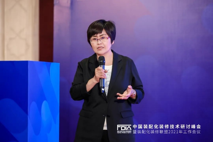 裝配化裝修聯(lián)盟常務(wù)副理事長(zhǎng)、中國(guó)建設(shè)科技集團(tuán)股份有限公司總裁孫英以“攜手共進(jìn) 推動(dòng)裝配化裝修全面發(fā)展”為題作主題發(fā)言,基于全行業(yè)推動(dòng)綠色低碳、高質(zhì)量發(fā)展的大背景,結(jié)合中國(guó)建設(shè)科技集團(tuán)在裝配化裝修方面的探索,闡述了裝配化裝修的意義及概念、發(fā)展現(xiàn)狀、行業(yè)突出問(wèn)題及癥結(jié),并就關(guān)于推動(dòng)裝配式裝修的思考進(jìn)行分享。她提出,推動(dòng)裝配化裝修發(fā)展勢(shì)在必行,要以問(wèn)題為導(dǎo)向,進(jìn)一步全面提升行業(yè)對(duì)裝配化裝修的認(rèn)識(shí),全面提升裝配化裝修的設(shè)計(jì)能力和水平,進(jìn)一步加強(qiáng)部品體系的研發(fā),建立通用化的技術(shù)體系,大力推動(dòng)EPC工程總承包的模式,改進(jìn)施工組織方式,從而全面釋放裝配化裝修的核心價(jià)值和優(yōu)勢(shì),提升建筑品質(zhì),滿(mǎn)足人民日益增長(zhǎng)的對(duì)美好生活的需要。