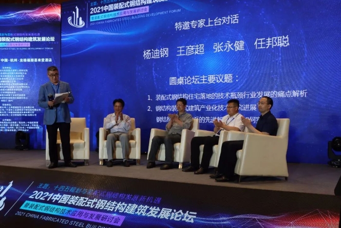 中國建筑標(biāo)準(zhǔn)設(shè)計(jì)研究院副總經(jīng)理、勘察設(shè)計(jì)大師郁銀泉,長江精工鋼結(jié)構(gòu)(集團(tuán))股份有限公司高級總裁助理徐國軍,浙江省鋼結(jié)構(gòu)協(xié)會會長、中天建設(shè)總工蔣金生,中國建筑設(shè)計(jì)研究院裝配式建筑工程研究院院長趙鈿,重慶大學(xué)土木工程學(xué)院鋼結(jié)構(gòu)工程研究中心副教授李江,中國城市科學(xué)研究會秘書長助理、中國建筑產(chǎn)業(yè)化聯(lián)盟理事長尹伯悅,華建集團(tuán)上海建筑科創(chuàng)中心建筑工業(yè)化學(xué)科中心主任李進(jìn)軍,比姆泰客信息科技(上海)有限公司常務(wù)副總經(jīng)理王強(qiáng)強(qiáng),杭州鐵木辛柯建筑結(jié)構(gòu)設(shè)計(jì)事務(wù)所有限公司總工程師王彥超,中國中冶裝配式建筑(上海)技術(shù)研究院首席研究員劉威,中建科工集團(tuán)有限公司浙江公司總工程師季澤華,隆基新能源產(chǎn)品營銷總監(jiān)付朋波,安泰吉屋科技發(fā)展(北京)有限公司總經(jīng)理李藏柱,艾爾柯瑞特(中國)有限公司銷售總監(jiān)賴世成,浙江龍湖研發(fā)部結(jié)構(gòu)總監(jiān)陳強(qiáng),全國房地產(chǎn)商會聯(lián)盟副秘書長崔東義等專家、嘉賓出席了會議。陽地鋼(北京)裝配式建筑設(shè)計(jì)研究院負(fù)責(zé)人楊迪崗,中國建筑節(jié)能協(xié)會秘書長張永健,中國建筑標(biāo)準(zhǔn)設(shè)計(jì)研究院任邦聰,杭州鐵木辛柯建筑結(jié)構(gòu)設(shè)計(jì)事務(wù)所有限公司總工程師王彥超開展了圓桌論壇主題辯論。