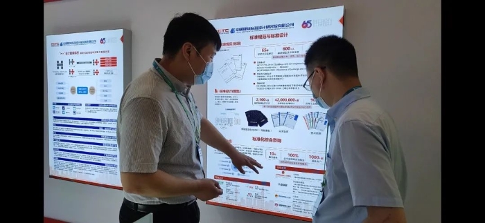 展會期間,中國建設科技集團總裁孫英、副總裁于凱、副總裁劉志鴻、中國建筑標準設計研究院總經(jīng)理曹彬、副總經(jīng)理李兵來到標準院展位參觀指導,并仔細聽取了標準院布展及項目情況。