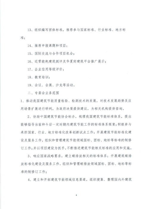 4、經(jīng)政府有關(guān)部門批準(zhǔn),組織編制并發(fā)布團(tuán)體標(biāo)準(zhǔn),宣傳推廣黨和政府主管部門建筑節(jié)能減碳政策和導(dǎo)向,引導(dǎo)行業(yè)、社會綠色低碳的生產(chǎn)生活方式;