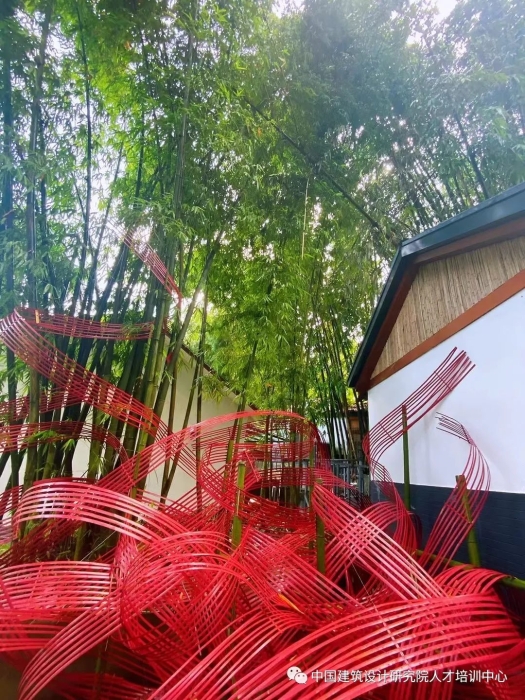 竹藝村地處“國家級非物質(zhì)文化遺產(chǎn)”竹編小鎮(zhèn)的道明鎮(zhèn),共有86戶村民。2016年起,竹藝村踐行國家“鄉(xiāng)村振興”戰(zhàn)略開始探索宅基地“三權(quán)分置”,按照“公司+設(shè)計(jì)師聯(lián)盟+鄉(xiāng)村規(guī)劃師+村民”的共商模式,開始規(guī)劃設(shè)計(jì)與建設(shè),讓藝術(shù)點(diǎn)亮鄉(xiāng)村,用文化延續(xù)未來。