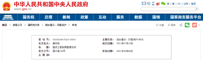 《建設(shè)工程抗震管理?xiàng)l例》已經(jīng)2021年5月12日國(guó)務(wù)院第135次常務(wù)會(huì)議通過,現(xiàn)予公布,自2021年9月1日起施行。