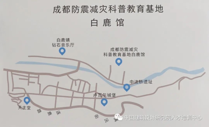 白鹿音樂小鎮(zhèn)位于彭州市白鹿鎮(zhèn),地處成都西北,是國家4A級(jí)旅游景區(qū),也是成都市十大古鎮(zhèn)之一。小鎮(zhèn)距離汶川很近,在5.12地震災(zāi)后重建第一階段,利用中法文化交流的歷史,得到資金支持,修建了體現(xiàn)中法文化交融元素的“中法風(fēng)情小鎮(zhèn)”。