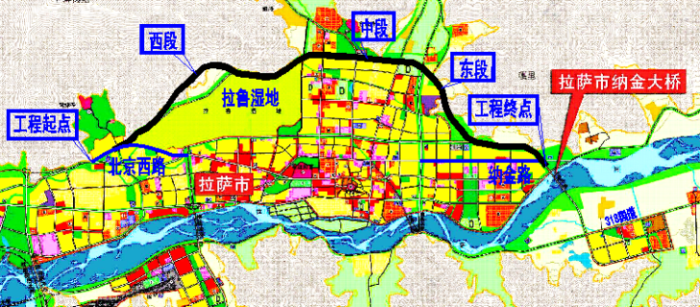 ▲拉薩環(huán)城路(北段)市政工程,中國市政工程華北設(shè)計(jì)研究總院有限公司設(shè)計(jì)
