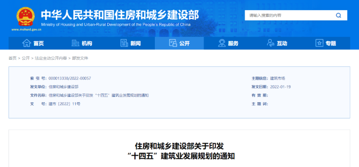 剛剛,住建部官網(wǎng)發(fā)布《“十四五”建筑業(yè)發(fā)展規(guī)劃》(以下簡稱《規(guī)劃》),闡明“十四五”時期建筑業(yè)發(fā)展的戰(zhàn)略方向,明確發(fā)展目標和主要任務,是行業(yè)發(fā)展的指導性文件。
