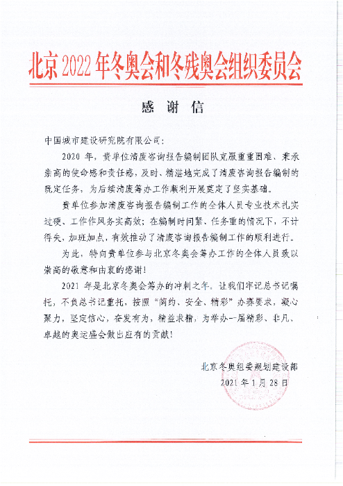 北京2022年冬奧會和冬殘奧會組織委員會賽時場館清廢咨詢服務(wù)方案經(jīng)北京冬奧組委2021年第8次秘書長專題會議審議通過