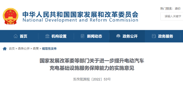 為全面貫徹落實(shí)《國(guó)務(wù)院辦公廳關(guān)于印發(fā)新能源汽車產(chǎn)業(yè)發(fā)展規(guī)劃(2021–2035年)的通知》,支撐新能源汽車產(chǎn)業(yè)發(fā)展,突破充電基礎(chǔ)設(shè)施發(fā)展瓶頸,推動(dòng)構(gòu)建新型電力系統(tǒng),助力“雙碳”目標(biāo)實(shí)現(xiàn),國(guó)家發(fā)展改革委、住房和城鄉(xiāng)建設(shè)部等10部門聯(lián)合印發(fā)了《關(guān)于進(jìn)一步提升電動(dòng)汽車充電基礎(chǔ)設(shè)施服務(wù)保障能力的實(shí)施意見(jiàn)》。