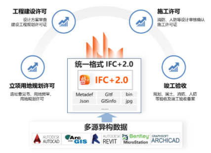 三是安全自主可控。采用國際通用BIM數(shù)據(jù)標準(IFC)+自主格式,滿足自主可控和與國際標準接軌的雙重需求。該數(shù)據(jù)格式實現(xiàn)數(shù)據(jù)模型自主可控的同時,也為未來國產(chǎn)設計端預留接口,同時,基于自主BIM圖形引擎,實施云端審查,便利用戶安全易用。