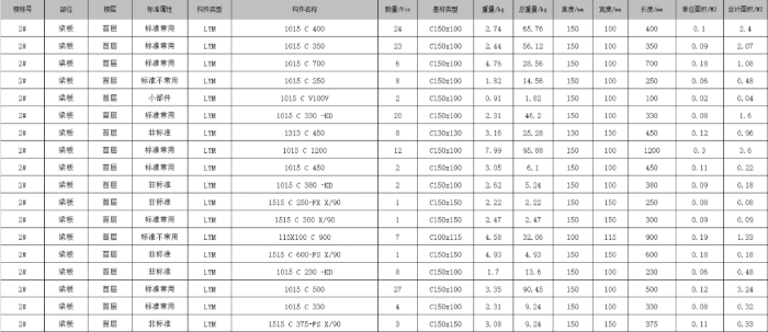 (3)出圖及物料清單。在完成本項目的預制構(gòu)件深化設計后,設計人員通過預制構(gòu)件深化設計系統(tǒng)的一鍵出圖功能及物料清單功能,對模型中的所有預制構(gòu)件及平面進行出圖(如圖11所示),并導出本項目的物料清單表(如圖12所示)。根據(jù)導出的圖紙及清單直接通過智能生產(chǎn)管理平臺對接構(gòu)件廠,完成生產(chǎn)構(gòu)件詳圖交付。