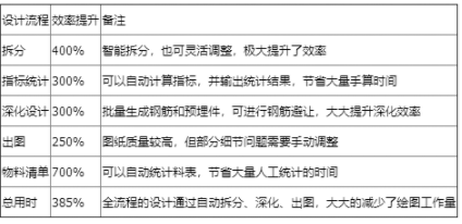 預制構(gòu)件深化設計系統(tǒng)相較傳統(tǒng)設計方式效率提升表,如表1所示。
