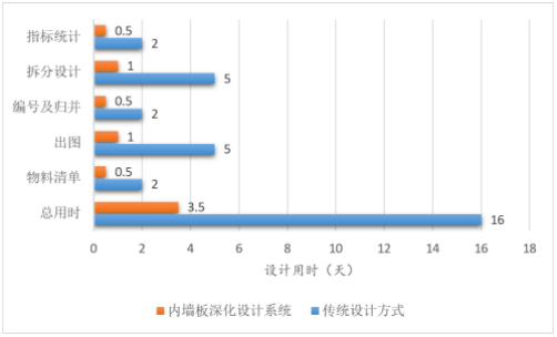內(nèi)墻板深化設計系統(tǒng)設計時間與傳統(tǒng)設計時間效率對比,如圖21所示。