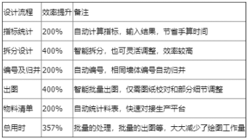 內(nèi)墻板深化設計系統(tǒng)相較傳統(tǒng)設計方式效率提升表,如表2所示。