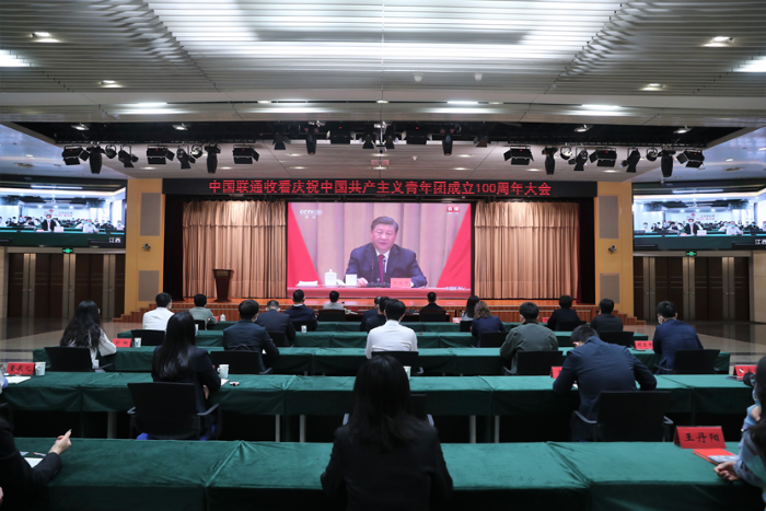 ▲ 中國(guó)聯(lián)通組織集中收聽(tīng)收看慶祝中國(guó)共產(chǎn)主義青年團(tuán)成立100周年大會(huì)。