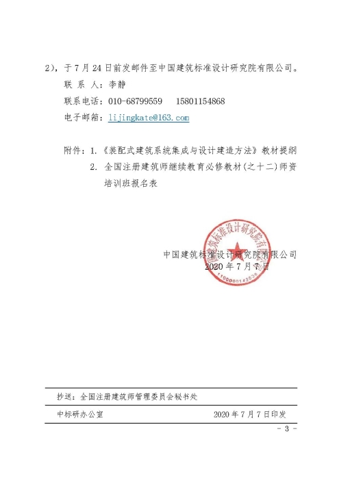 根據(jù)全國(guó)注冊(cè)建筑師管理委員會(huì)秘書(shū)處《關(guān)于印發(fā)〈全國(guó)注冊(cè)建筑師繼續(xù)教育必修教材(之十二)教學(xué)計(jì)劃〉的通知》(注建秘[2020]2號(hào))要求,為了規(guī)范各地注冊(cè)建筑師繼續(xù)教育工作、提高培訓(xùn)教學(xué)水平,教材編寫(xiě)單位中國(guó)建筑標(biāo)準(zhǔn)設(shè)計(jì)研究院有限公司定于2020年7月在線上舉辦全國(guó)注冊(cè)建筑師繼續(xù)教育必修教材(之十二)師資培訓(xùn)班(中標(biāo)研發(fā)[2020]141號(hào)),培訓(xùn)教材為《裝配式建筑系統(tǒng)集成與設(shè)計(jì)建造法》。