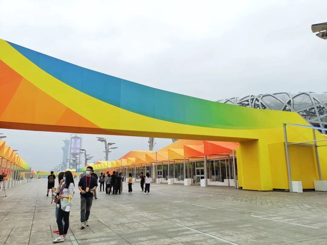 以奧林匹克公園景觀大道為主軸,30個(gè)室外場(chǎng)館連成一道“彩虹”,5道“山形”迎賓門則與北部森林公園的奧海、仰山遙相呼應(yīng),將遠(yuǎn)處的風(fēng)景“框”到視野中。以奧林匹克公園為背景的室外場(chǎng)館,是2020年中國國際服務(wù)貿(mào)易交易會(huì)(簡(jiǎn)稱“服貿(mào)會(huì)”)的亮點(diǎn)之一。