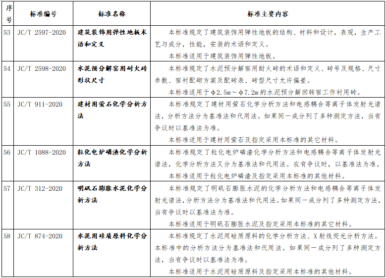 10月27日,工信部發(fā)布《200項(xiàng)行業(yè)標(biāo)準(zhǔn)及78項(xiàng)行業(yè)標(biāo)準(zhǔn)樣品報(bào)批公示》,其中包括66項(xiàng)建材行業(yè)標(biāo)準(zhǔn),公示截止日期2020年11月26日。
