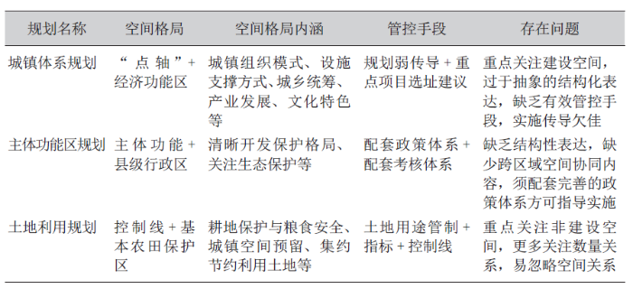 表 1 傳統(tǒng)空間性規(guī)劃中空間格局編制要點及存在問題