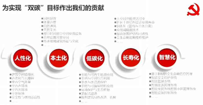 為減少碳排放,中國建設(shè)科技集團(tuán)在建筑工程領(lǐng)域提出人性化、本土化、低碳化、長(zhǎng)壽化、智慧化的目標(biāo)。在空間節(jié)能上,注重創(chuàng)造建筑的先天綠色基因,從少人工、多天然、體現(xiàn)當(dāng)?shù)匚拿}的建筑創(chuàng)作,順應(yīng)了自然的綠色智慧和地域文化特征。為延長(zhǎng)建筑壽命,研究減隔震技術(shù)提高地震韌性能力。在裝配式內(nèi)裝領(lǐng)域,減少建筑裝修中大量使用水泥等高資源密度建材,減少不可降解的建筑垃圾,提升建筑品質(zhì)。實(shí)現(xiàn)零碳建筑,必須以全壽命期的視野,綜合施策,絕非“一招鮮”就能解決。