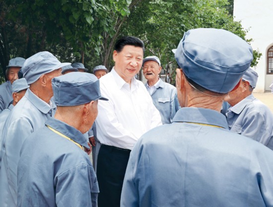 2017年6月21日至23日,中共中央總書記、國(guó)家主席、中央軍委主席習(xí)近平在山西考察。這是6月21日上午,習(xí)近平在呂梁市興縣晉綏軍區(qū)司令部舊址同晉綏邊區(qū)老戰(zhàn)士老同志代表親切交談。 新華社記者 龐興雷/攝