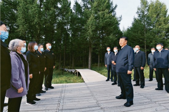 2021年8月23日至24日,中共中央總書記、國(guó)家主席、中央軍委主席習(xí)近平在河北省承德市考察。這是23日下午,習(xí)近平在塞罕壩機(jī)械林場(chǎng)尚海紀(jì)念林考察時(shí),同林場(chǎng)職工代表親切交流。 新華社記者 李學(xué)仁/攝