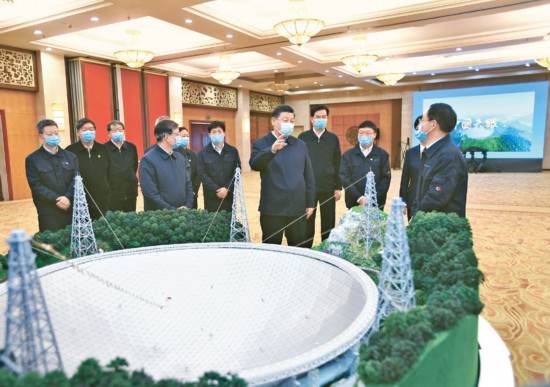 2021年2月3日至5日,中共中央總書記、國(guó)家主席、中央軍委主席習(xí)近平來(lái)到貴州考察調(diào)研,看望慰問(wèn)各族干部群眾,向全國(guó)各族人民致以美好的新春祝福。這是5日上午,習(xí)近平親切會(huì)見(jiàn)“中國(guó)天眼”項(xiàng)目負(fù)責(zé)人和科研骨干,聽(tīng)取“中國(guó)天眼”建設(shè)歷程、技術(shù)創(chuàng)新、國(guó)際合作等情況介紹。 新華社記者 謝環(huán)馳/攝