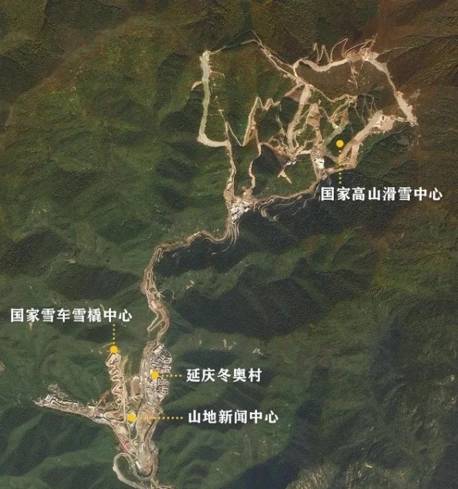 自西南向東北俯瞰國(guó)家雪車(chē)雪橇中心(孫海霆,攝)