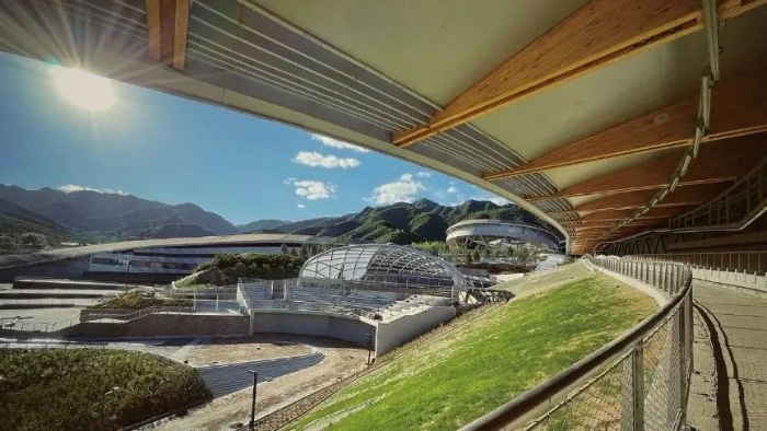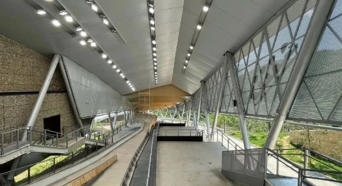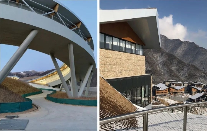 國(guó)家雪車(chē)雪橇中心賽場(chǎng)提供觀眾坐席2000個(gè)和站席8000個(gè)。是本屆冬奧會(huì)設(shè)計(jì)難度最高、施工難度最大、施工工藝最為復(fù)雜的新建比賽場(chǎng)館之一。國(guó)家雪車(chē)雪橇中心由賽道形狀和遮陽(yáng)設(shè)計(jì)帶來(lái)的獨(dú)特建筑形態(tài),宛如一條游龍飛騰于山脊之上,被形象地稱(chēng)為“雪游龍”