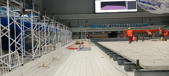 為滿足2022冬奧會冰壺比賽需求,在原有泳池上搭設(shè)4條標(biāo)準(zhǔn)冰壺賽道,包括鋼結(jié)構(gòu)支撐體系、混凝土面板和制冰系統(tǒng)及配套管線、賽場除濕系統(tǒng)。通過建立模塊化搭拆工藝、檢測標(biāo)準(zhǔn)、制冰工藝標(biāo)準(zhǔn),實現(xiàn)國家游泳中心“冰水”功能快速轉(zhuǎn)換的成套技術(shù),填補(bǔ)國內(nèi)場館“冰水”轉(zhuǎn)化的技術(shù)空白。