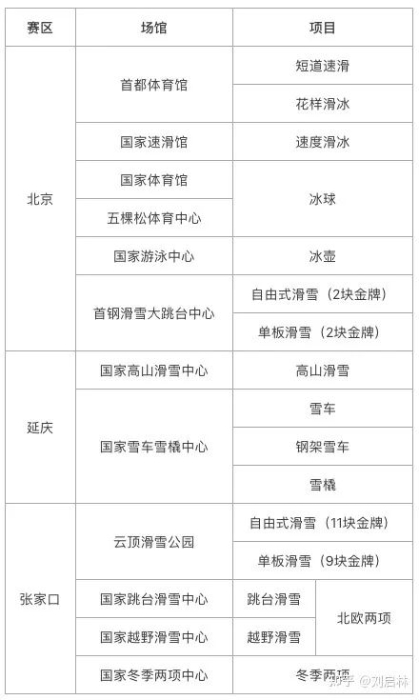 冬奧會的比賽場館與比賽項目對應(yīng)表?