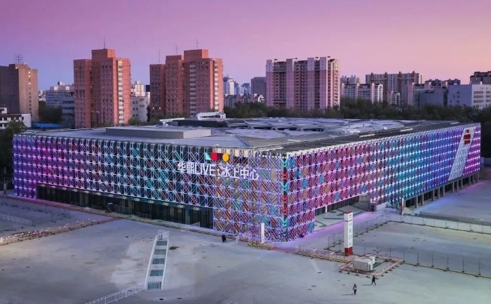 驚艷的“冰菱花”外幕墻設(shè)計:五棵松冰上運動中心建筑外立面采用格柵幕墻體系,兼具層次美感和遮陽實效。格柵幕墻由5種顏色組成,通過先進(jìn)技術(shù)進(jìn)行色彩分布、定位計算和精準(zhǔn)控制,夜間可實現(xiàn)多彩雪花飄落特效,讓人仿佛走進(jìn)“冰雪世界”。