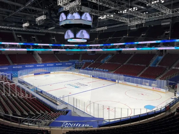 場館還重點對現(xiàn)有照明設(shè)施和顯示系統(tǒng)進(jìn)行了改造,競賽場館的上方安裝了18臺專業(yè)投影儀,以冰面為屏幕,把動感震撼的內(nèi)容,用三維方式展示在冰面上,與先進(jìn)的88臺光束燈、84臺切割燈和熒光棒相互配合。照明系統(tǒng)各項指標(biāo)可達(dá)到HDTV超高清轉(zhuǎn)播水平,滿足超高速攝像機(jī)回放要求;顯示屏達(dá)到高清標(biāo)準(zhǔn),具備現(xiàn)場同步直播、精彩瞬間捕捉、賽況信息播報、計時記分統(tǒng)計、廣告播出等多項功能,大幅提升了觀賽體驗。