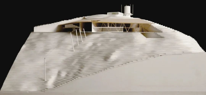 出發(fā)區(qū)需要更多地引入關(guān)于奧運(yùn)的文化主旨去回應(yīng)承辦國家特色的宏大命題。協(xié)調(diào)建筑與自然的關(guān)系就是我們文化的一部分。山頂出發(fā)區(qū)建筑內(nèi)部容納索道站并提供運(yùn)動員休息空間。根據(jù)索道安全運(yùn)行的場地水平長度需求,進(jìn)行了適量土方開挖,形成半覆土建筑,設(shè)計(jì)控制建筑體量,最高點(diǎn)不高于小海坨峰頂?shù)暮0胃叨?,表達(dá)對自然的敬畏。山頂出發(fā)區(qū)擁有獨(dú)特的景觀視野,外立面從外到內(nèi)考慮深遠(yuǎn)挑檐、廊道露臺、遮陽景窗等空間化設(shè)計(jì)方式,綜合解決了功能、節(jié)能和美觀的多方面需求。建筑以坡屋面回應(yīng)中國傳統(tǒng)建筑的歷史淵源,以樸實(shí)的木瓦作為屋面材料體現(xiàn)地域及場所特征,表明本屆冬奧會承辦國家的文化特質(zhì),同時(shí)坡屋面造型經(jīng)過了幾何化操作,又賦予其一定的獨(dú)特性和當(dāng)代性。頂部設(shè)置的觀山廊和“長卷”景窗提供了可以遠(yuǎn)眺國家雪車雪橇中心、延慶冬奧村和山地新聞中心的平遠(yuǎn)景致,一幅勝景映現(xiàn)于觀者的眼前,錯綜的賽道擬合于海坨山脈,正如雛燕之形,暨場館“雪飛燕”命名的由來。