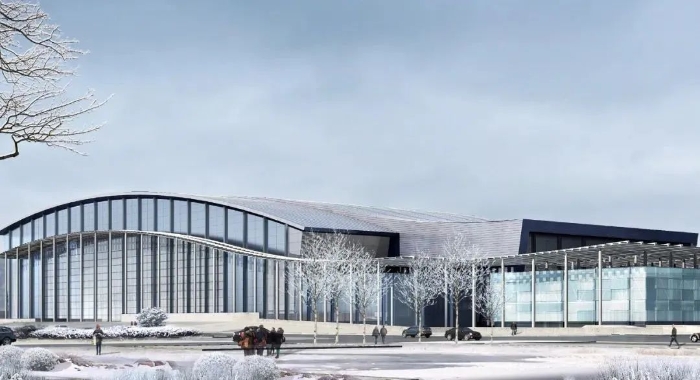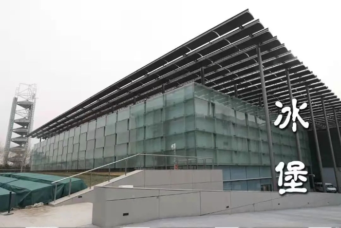 為充分體現(xiàn)冬奧會(huì)的冰雪元素,新建訓(xùn)練館的外立面設(shè)計(jì)上,采用了凸顯冬奧元素的“冰堡”造型玻璃幕墻,外幕墻為開(kāi)縫構(gòu)造,采用雙層夾膠設(shè)計(jì),由12毫米超白鋼化玻璃加2.28毫米專(zhuān)用膠,再加10毫米厚的壓花鋼化玻璃三者壓合而成。
