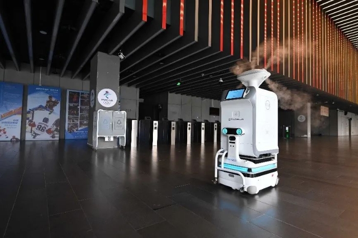 作為疫情防控常態(tài)化背景下一場(chǎng)重大體育盛會(huì),“冰之帆”內(nèi)防疫的工作安排嚴(yán)謹(jǐn)而科學(xué)?!邦^頂”噴著白霧的智能消毒機(jī)器人可以對(duì)環(huán)境進(jìn)行消毒。在“冰之帆”閉環(huán)管理防疫的重點(diǎn)區(qū)域,如運(yùn)動(dòng)員熱身區(qū)、防疫緩沖區(qū)、指揮室等空間都有空氣消毒機(jī)器人的身影,它可以對(duì)室內(nèi)的病原微生物、甲醛、PM2.5等復(fù)合物污染進(jìn)行消毒、凈化,24小時(shí)構(gòu)建安全、健康、潔凈的工作環(huán)境。場(chǎng)館內(nèi)的其他智能機(jī)器人可提供場(chǎng)館地面清潔、垃圾轉(zhuǎn)運(yùn)、物品配送等多項(xiàng)服務(wù),既能保證安全性,又能提高工作效率。