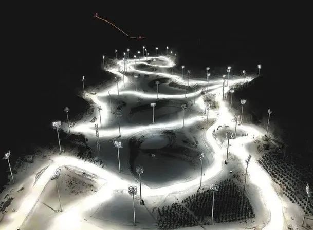 國(guó)家越野滑雪中心是一個(gè)最接近原生態(tài)的競(jìng)賽場(chǎng)館。越野滑雪被稱為冬季馬拉松,在國(guó)家越野滑雪中心,所有的賽道加起來長(zhǎng)13公里,分為東側(cè)山谷的競(jìng)賽賽道和南側(cè)山谷的訓(xùn)練賽道,其中用于競(jìng)賽的賽道長(zhǎng)9.7公里,用于訓(xùn)練的賽道長(zhǎng)1.8公里,用于熱身的賽道長(zhǎng)1.5公里?;乇眰?cè)高山,南側(cè)為比賽場(chǎng)地,南高北低,平均坡度約為20%,賽道依托南側(cè)坡地的設(shè)置,最高海拔約1721.6m,最低海拔約1638.8m,高差82.8m;南北坡之間為狹長(zhǎng)平緩地帶,居中位置布置體育場(chǎng)、起終點(diǎn)區(qū),體育場(chǎng)海拔高點(diǎn)1654m,低點(diǎn)1651m。