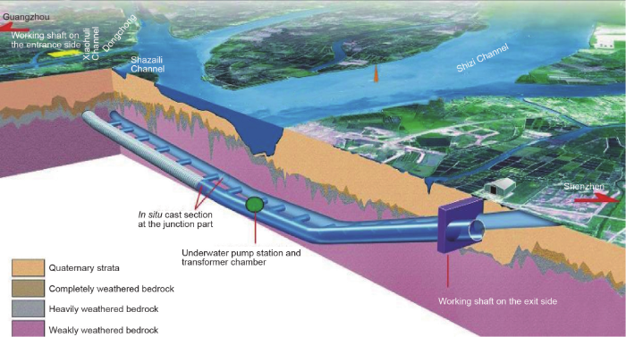 (3)在沉管法隧道方面,開發(fā)了移動(dòng)干塢管節(jié)預(yù)制和浮運(yùn)、沉放技術(shù),建立了海上大型人工島構(gòu)筑技術(shù),創(chuàng)新了海中深埋、長大沉管隧道修建技術(shù),在高水位差、大流速的江河中游修建了大型沉管隧道。