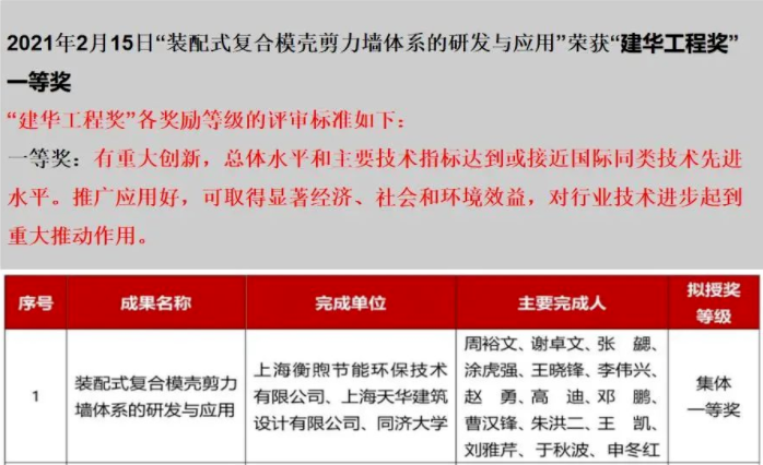 上海衡煦節(jié)能環(huán)保技術有限公司成立于2014年,公司致力于裝配式混凝土工業(yè)化建筑的高效施工和關鍵技術研究。公司聯(lián)合中國建筑科學研究院、同濟大學、上海天華建筑設計有限公司等多家著名研發(fā)單位歷時4年研發(fā)完成百分之百原創(chuàng)技術——TOP裝配式復合模殼技術體系,該技術體系的配套技術規(guī)程T/CECS 522-2018于2018年10月1日正式實施。工程案例在2019年、2020年、2021年陸續(xù)落地。2020年11月2日《裝配復合模殼體系混凝土剪力墻結構技術規(guī)程》標準喜獲中國工程建設標準化協(xié)會“標準科技創(chuàng)新獎”二等獎。2021年2月15日“裝配式復合模殼剪力墻體系的研發(fā)與應用”榮獲“建華工程獎”一等獎。
