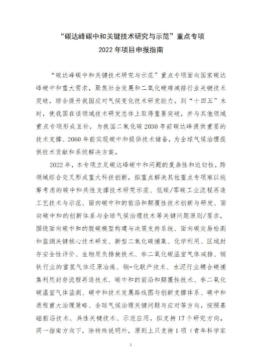 3月21日,科技部公布了2022年國家重點(diǎn)研發(fā)計(jì)劃“碳中和關(guān)鍵技術(shù)研究與示范”等兩個(gè)重點(diǎn)專項(xiàng)的項(xiàng)目申報(bào)指南(征求意見稿)。具體內(nèi)容如下: