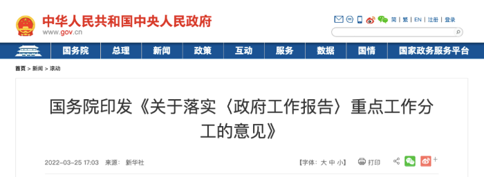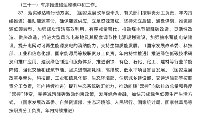 3月25日,國務院印發(fā)《關于落實〈政府工作報告〉重點工作分工的意見》,對四部分碳達峰碳中和工作各部委分工予以明確。